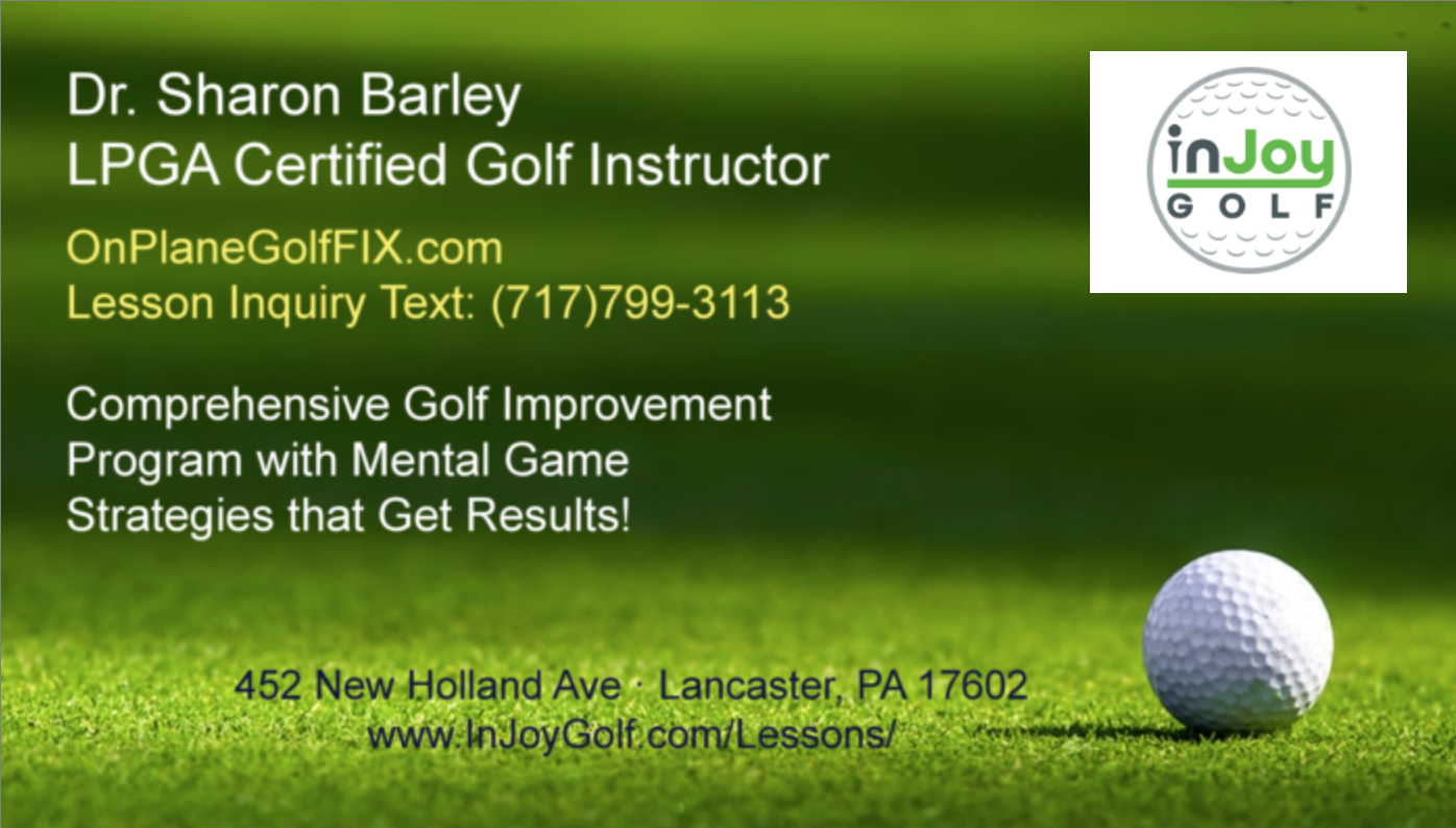 “I drove from Virginia to Pennsylvania and spent a half day with Sharon Barley. She videotaped my swing, and after review we spent most of our time working on the drills focusing on what I needed to improve on. We finished hitting driver and putting into play what was learned. She made a couple of key adjustments. This resulted in a 25 yard difference in carry! I would encourage everyone who is near Sharon to book a time with her. She will improve your game. THANKS Sharon!” -Jim G.